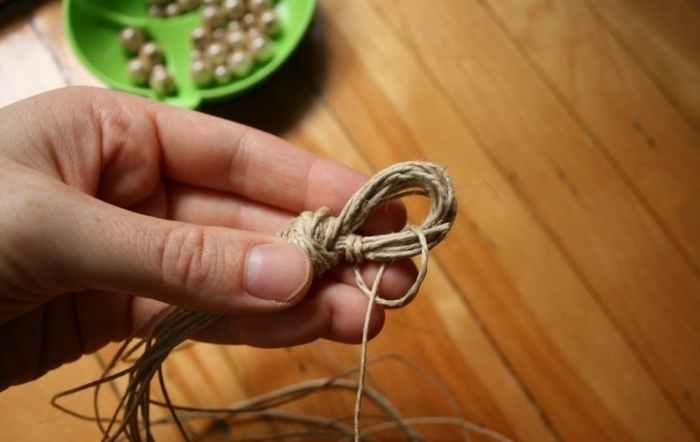 6. Далее завяжите большой узел так, чтобы жемчужина оказалась внутри петли.