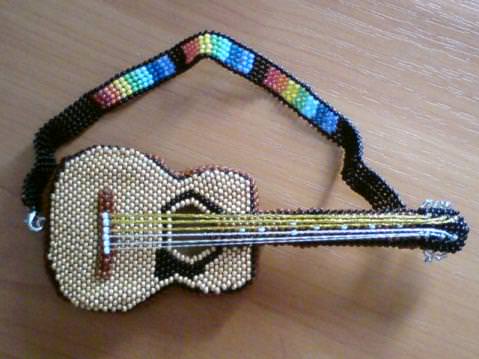 Вам нужна идея для необычного сувенира? Обратите внимание на эту симпатичную гитару, сплетенную из бисера. Сегодня мы расскажем, как можно своими руками сплести такую милую игрушку. Причем мы покажем, как это сделать способами. Этот сувенир-игрушку можно использовать как брелок.