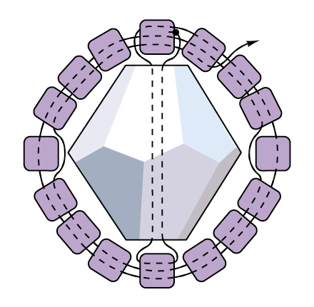 7. Продолжайте добавлять кристаллы Swarovski, как описано в шагах выше, обращаясь к таблице (справа) для подсчета бусинок. При использовании кристаллических биконусов пропускайте центральные бусинки, как вы делали вокруг кубических кристаллов, чтобы цилиндры аккуратно окаймляли кристалл Swarovski (см. РИСУНОК 4).