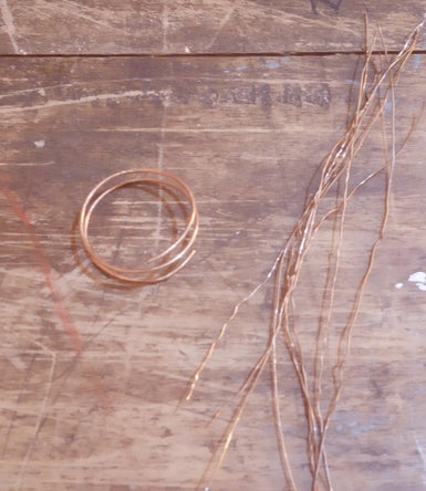 Этот шаг является совершенно необязательным, но нам кажется, что с такой оберткой украшение смотрится более интересно. Оберните более тонкой медной ювелирной проволокой всю свою круговую петлю, составляющую каркас вашего кулона. Накладывайте витки вплотную друг к другу, но идеальная ровность здесь не требуется: небольшая кривизна добавляет изделию аутентичности. Как видите на фото, мы не очень старались быть аккуратными на этом этапе.