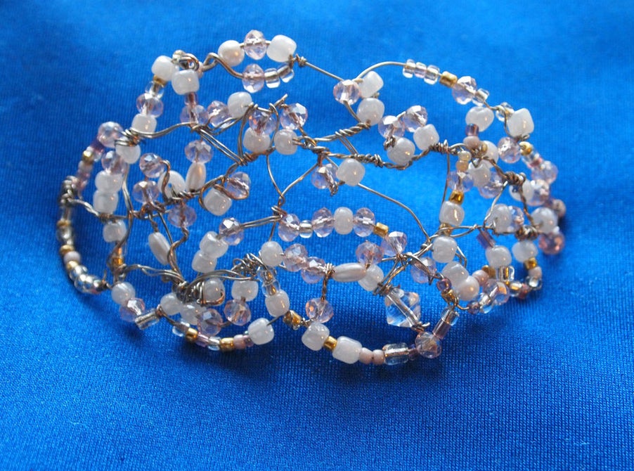 Теперь наше изысканное украшение для волос из проволоки своими руками готово. Надеемся, что вам понравилась работа над ним, и она вдохновила вас на создание подобных, но уже своих авторских, уникальных аксессуаров, которые украсят ваш образ или станут милым подарком для ваших подруг и родственниц. Наверное, вы уже поняли, что в этом проекте вы можете экспериментировать как с цветом, так и с формой используемых бусинок и сортами бисера. Вы также можете брать за основу гребешок или ободок для волос и аналогичным образом оплетать их бусинками. Приятного и увлекательного вам рукоделия!