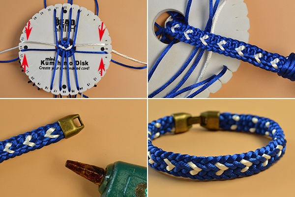 нейлоновые нити и скрестите их через средний круг мини-диска для кумихимо.