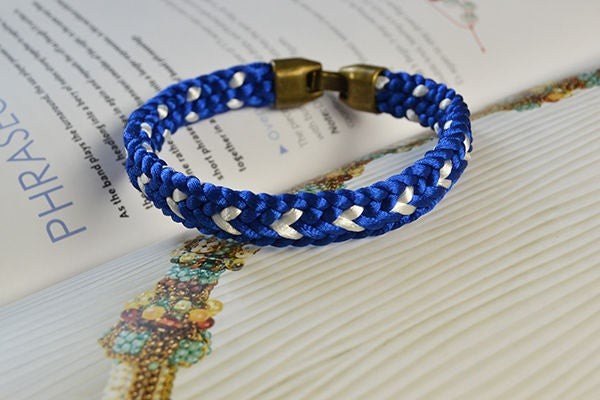 Шаг 6: завершенный вид синего плетеного браслета дружбы Кумихимо.