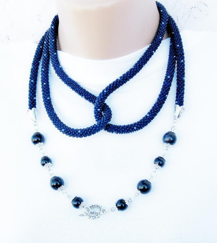 После закрепления концов лариата, к нему можно крепить любой дополнительный декор. Направлять этот процесс можете только вы сами. Радостного вам творчества!
