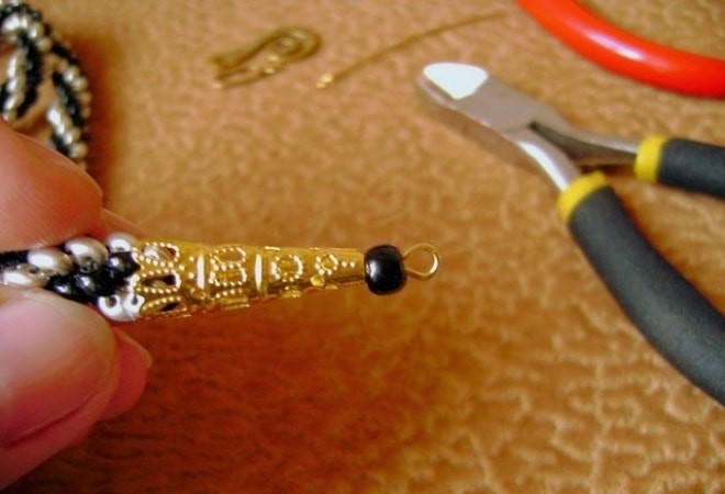 3. В процессе протягивания концов жгута сквозь петлю, держите его за плетеную часть (но не за кисточки и подвески, которые могут и оторваться).