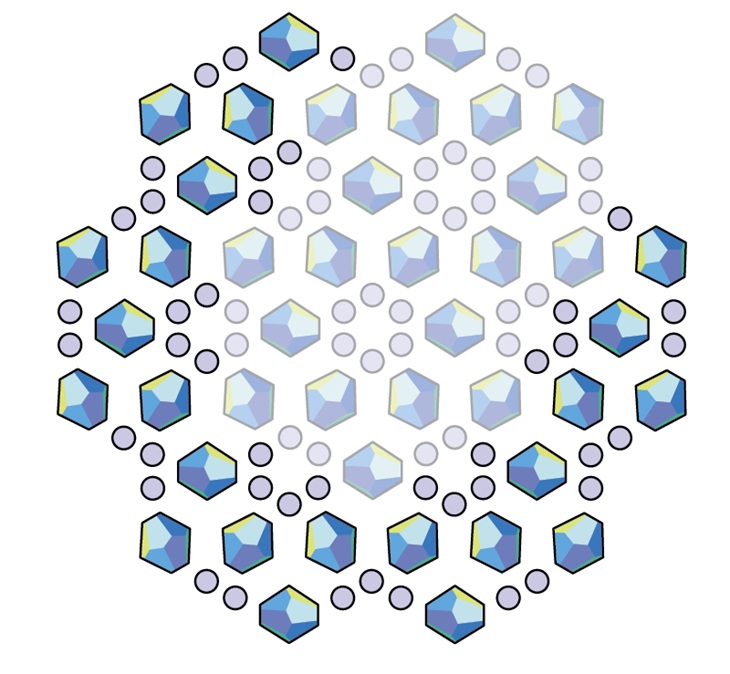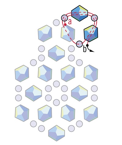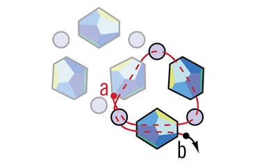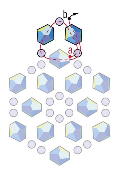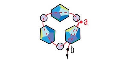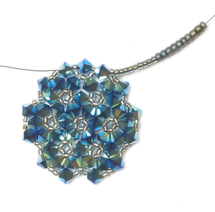 4. Приплетите шесть таких же кристаллических фрагментов к каждому из шести внешних биконических кристаллов Swarovski из первого фрагмента. Чтобы запустить первый кристаллический фрагмент из необходимых шести, повторите шаг 2 (см. РИСУНОК 4, a – b).