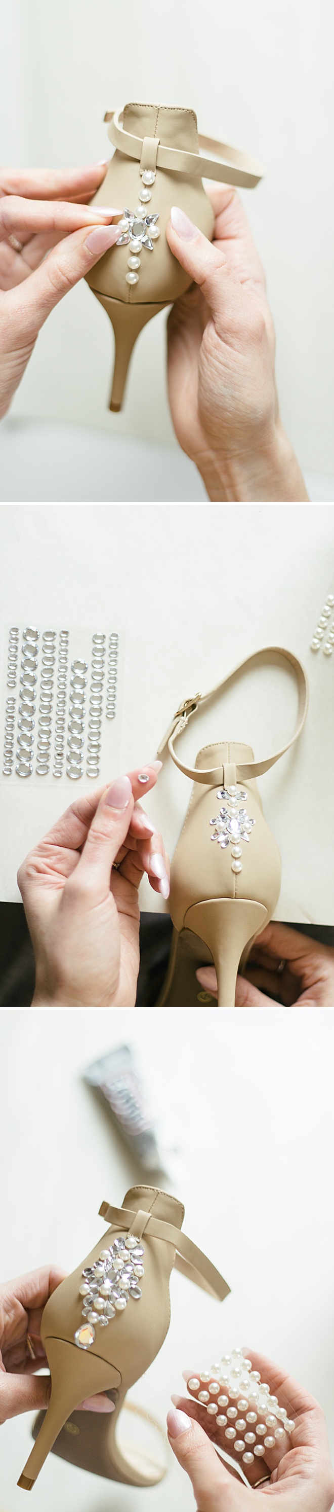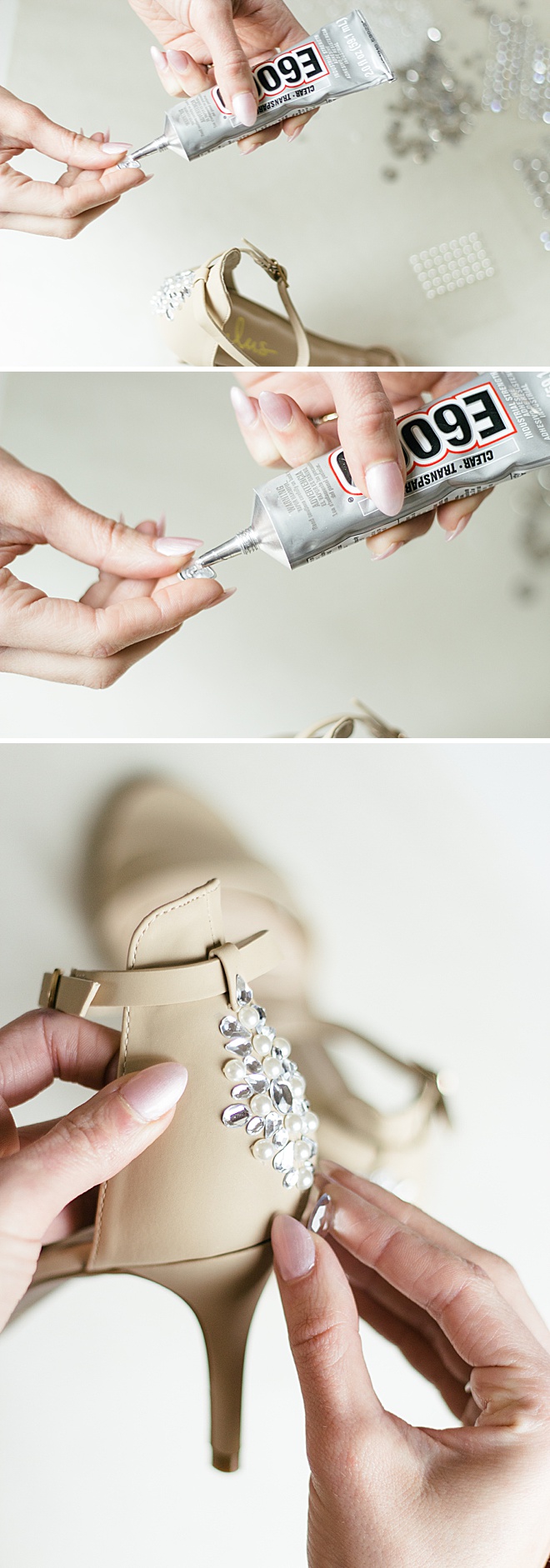 После того, как все стразы будут приклеены, подождите, чтобы клей хорошо высох. Клей начнет отвердевать примерно через десять минут, но для полного отвердевания потребуется около 24-72 часов. Дайте декору как можно больше времени для основательного высыхания, чтобы в самый ответственный момент торжества красивая обувь не испортилась, да и после свадьбы туфли еще долго сохраняли свой привлекательный внешний вид.