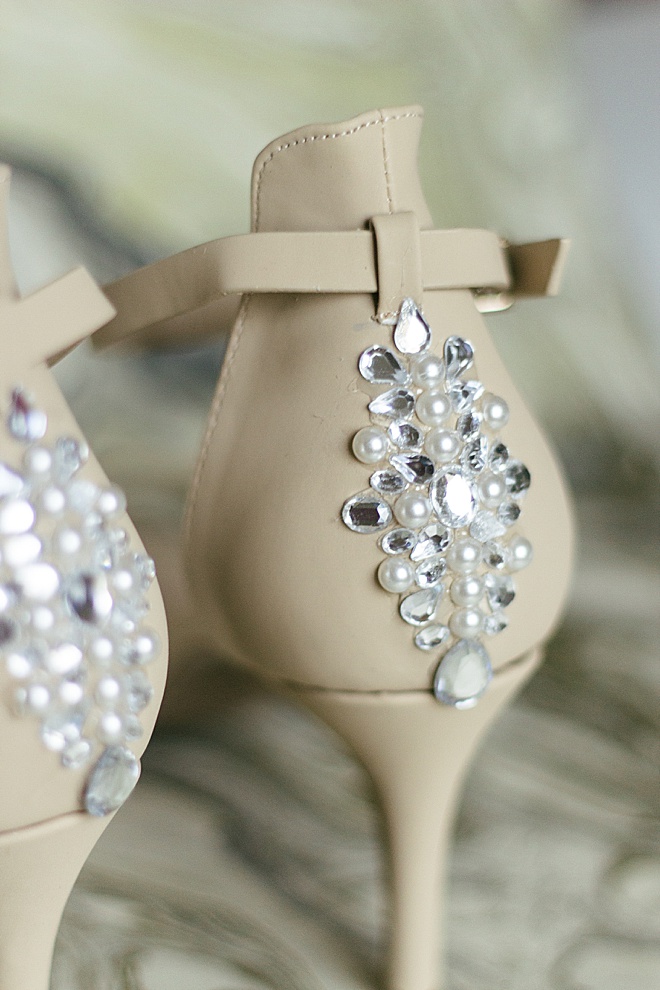 Для декора свадебных туфель сияющими стразами разной формы и размера требует определенных навыков и ловкости, поскольку наносить клей на поверхность обуви, а потом и сами стразы нужно будет точечно. А при декорировании замшевых туфель нужно быть особенно аккуратными, точными и осторожными. Кожаные туфли либо пару из кожезаменителя можно полностью украсить кристаллами, а на замшевых туфлях стоит украшать только лишь высокий каблук, дополнив дизайн брошкой-бантиком на боковой стороне. Мы украсили туфли из кожзама на задней стороне.