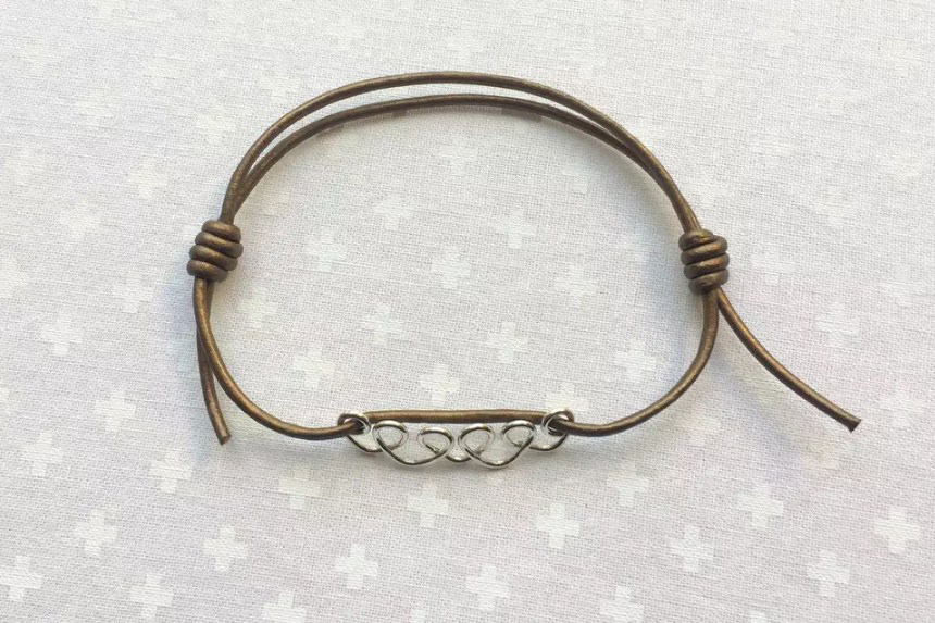 Прикрепите к браслету подвеску либо брелок, который будут перемещаться вдоль шнурка. Это облегчит вам центрирование катушек и придаст дополнительное очарование украшению.