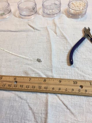 Повторяйте шаги 4-7, пока не нанижите нечетное количество бусинок, и заканчивайте отрезком примерно 2,5 см витой проволоки. Лишнюю проволоку ниже скручивания отрежете позже.