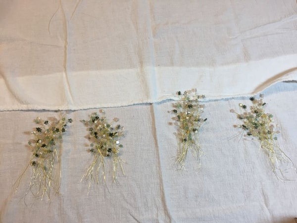 Примечание. Во время крепления веточек, старайтесь укладывать хвостик основания веточки на внутреннюю часть каркаса короны. Когда крепите каждую следующую веточку, удаляйте лишний хвостик предыдущей. Когда крепите текущую веточку, накрывайте проволочные хвосты предыдущей на пару витков. Вытягивайте проволочные хвосты предыдущей ветки в сторону и оборачивайте ими пару витков, а затем кусачками обрезайте хвосты и плоскогубцами сглаживайте их, оборачивая в итоге обмоточной проволокой.