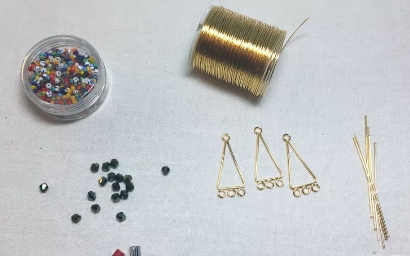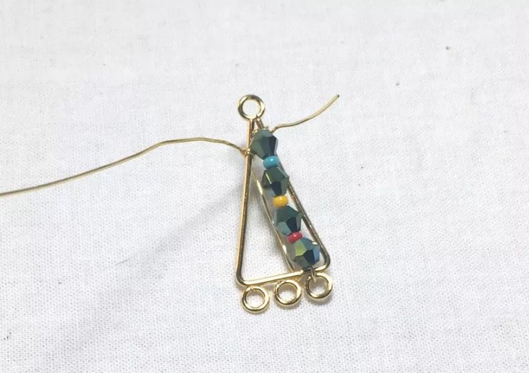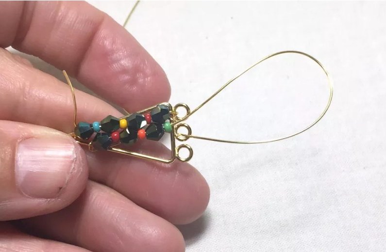 Ключевым компонентом для изготовления этих серег является треугольная металлическая рамка с тремя петлями, которую можно купить в отделах фурнитуры для бижутерии, а можно и самим ее изготовить из ювелирной проволоки. Три петли на самодельной раме вовсе необязательно делать, так как вы можете прикрепить подвески непосредственно к раме с помощью соединительных колец. Иногда лучший способ изготовления ювелирных изделий - это использование имеющихся у вас материалов, чтобы сделать проект по-настоящему вашим.