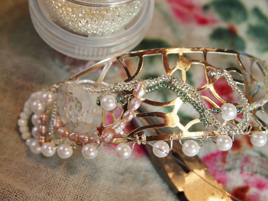 Свадебные головные уборы, продаваемые в Интернете, порой обходятся в пару сотен долларов - и некоторые из них действительно красивы и, возможно стоят того, но многие выглядят, как обычные или изготовленные где-то на фабрике. Поэтому гораздо приятнее сделать свой собственный аксессуар для волос, который сохранит ваши средства, будет уникальным и будет передавать ваши чувства и ожидания в преддверии важнейшего события вашей жизни. Помочь вам в этом деле призван сегодняшний мастер-класс, в котором мы детально расскажем, как самостоятельно сделать уникальный красивый свадебный головной убор - ободок из бисера и бусин с маленькой вуалью.