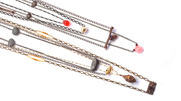 1. Стиль и материал украшения должен иметь некоторую схожесть. Например, металлическая цепочка будет плохо смотреться с бусами из полудрагоценных камней. А вот кабошон на цепочке смотрится идеально.