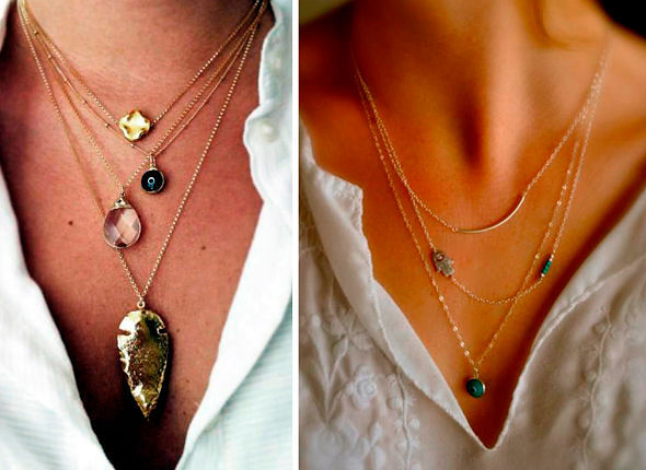 2. Лучше использовать подобные аксессуары с предметами гардероба, имеющими глубокое декольте или V-образный вырез.