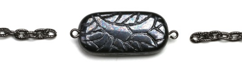 4. Украсив все отрезки декором, присоединить четыре цепочки к одной части застежки. Проделать тоже с другой стороной изделия.