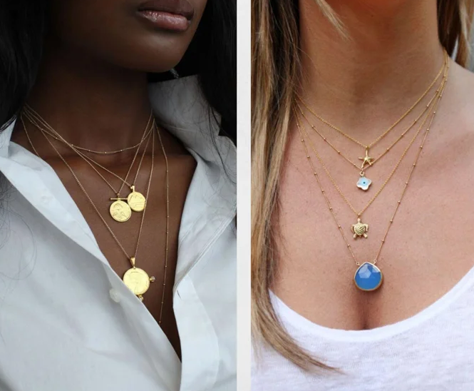 4. Модными считаются многослойные ожерелья, которые подчеркивают красоту небесных светил в сочетании со знаками зодиака.