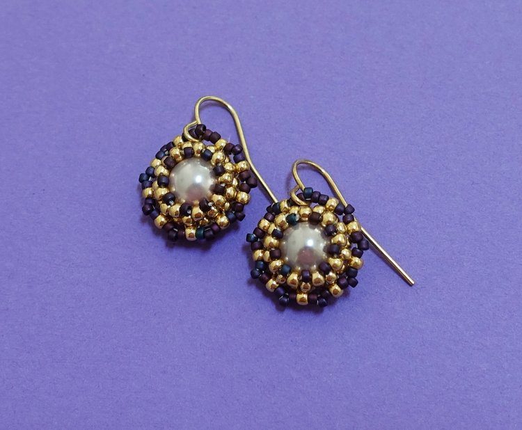 В этом мастер-классе мы расскажем, как сделать такую блестящую пару сережек из жемчуга и бисера. Для этого мы покажем, как оплести бисером жемчужную круглую бусину или любую другую бусину или камень, который вам понравится. В такой оплетке отлично будут смотреться некоторые полудрагоценные и драгоценные камни и кабошоны из других материалов.