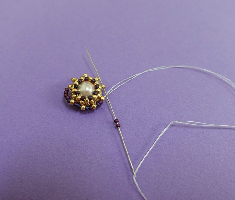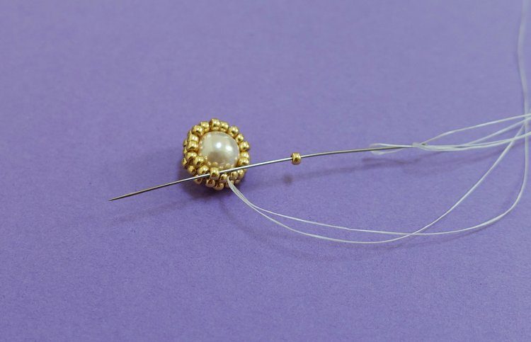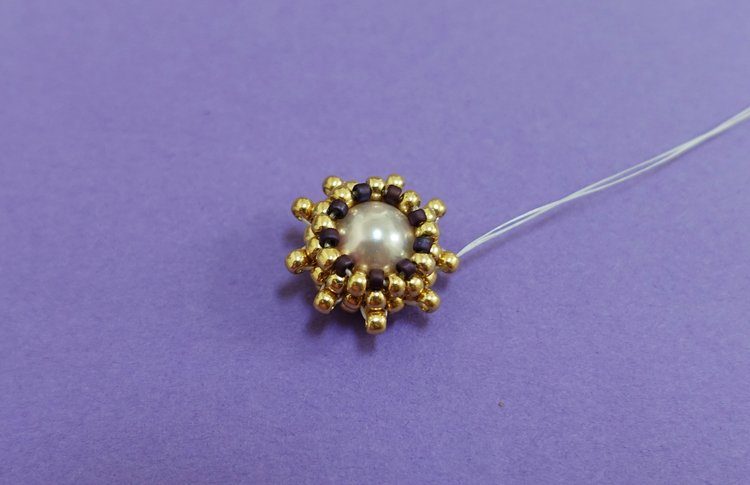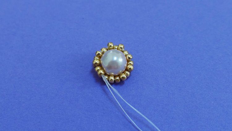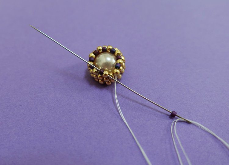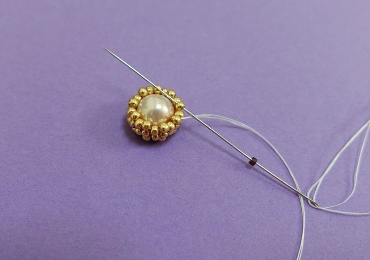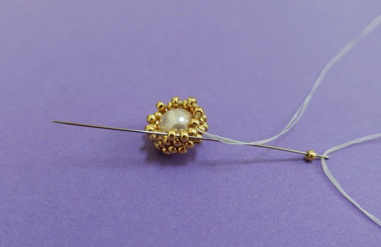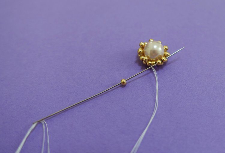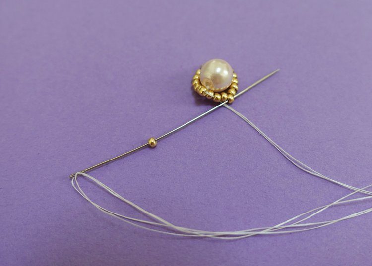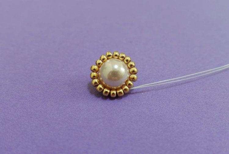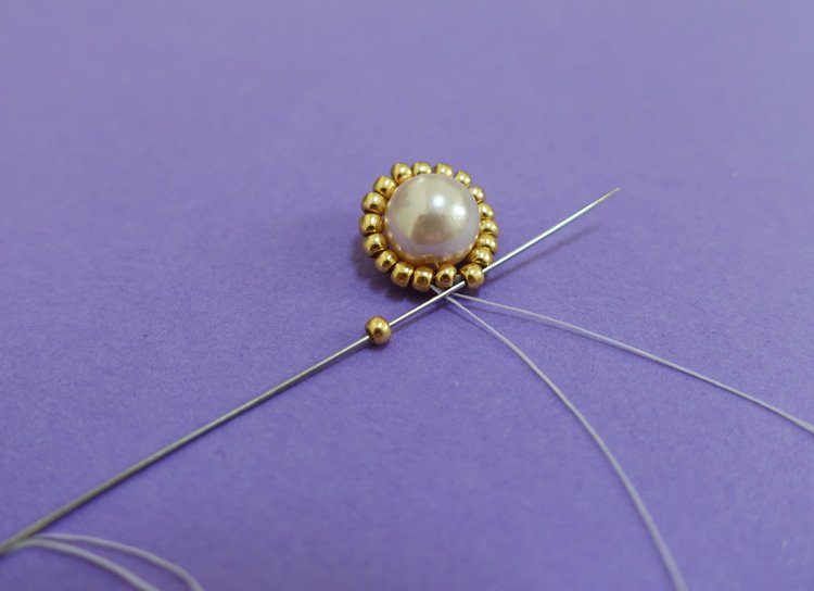 Ряд бисерин должен прилегать вплотную к жемчужной бусине без промежутков между бисеринками (см. фото).