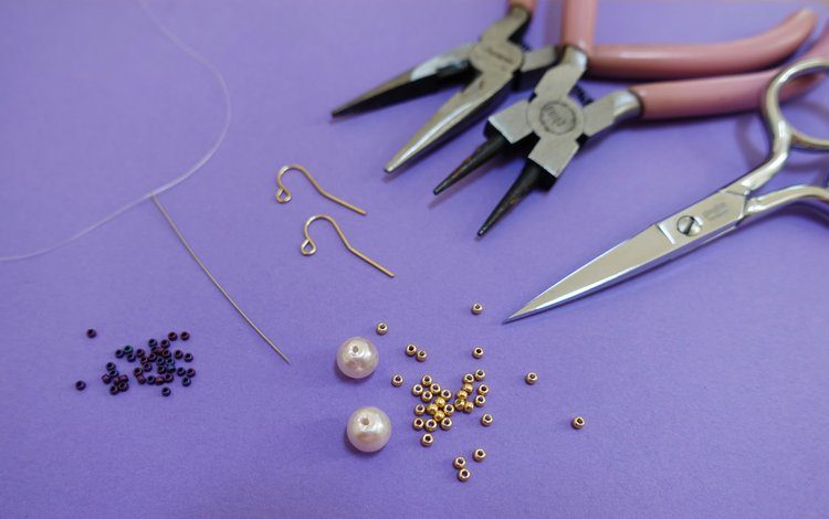 Материалы, которые потребуются, чтобы обплести жемчужные бусины бисером: