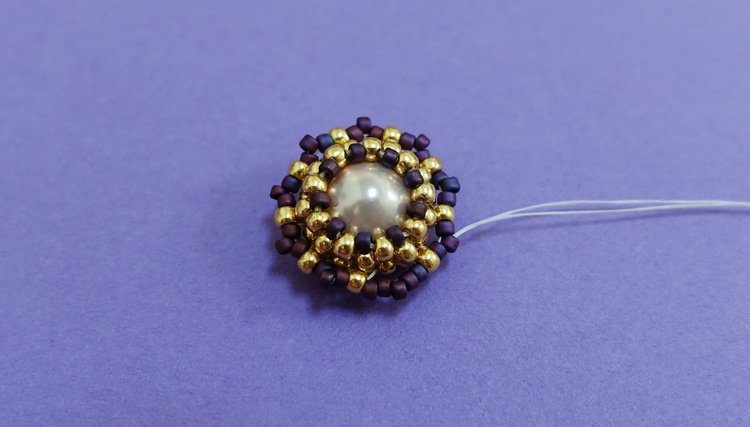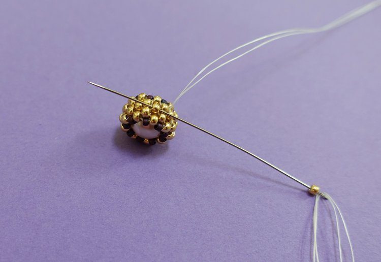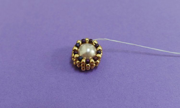 16. Пройдите иголкой с нитью через этот внешний круг бисера еще раз или два, а затем закрепите свою нитку, спрячьте ее и обрежьте ее хвосты.
