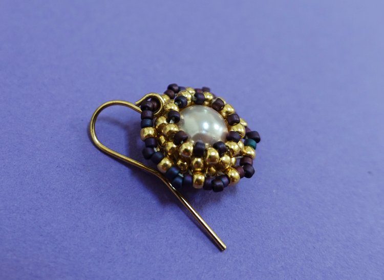 18. Зацепите петлю швензы за петлю из пяти бисерин и аккуратно закройте петлю с помощью плоскогубцев. Ваша первая серьга готова. Повторите все действия сначала, чтобы сделать другую.
