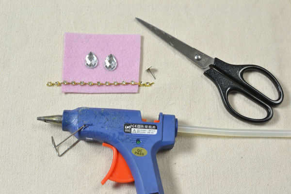 1. Бусины из горного хрусталя положить на кусочек фетра. Приклеить при помощи клеевого пистолета.
