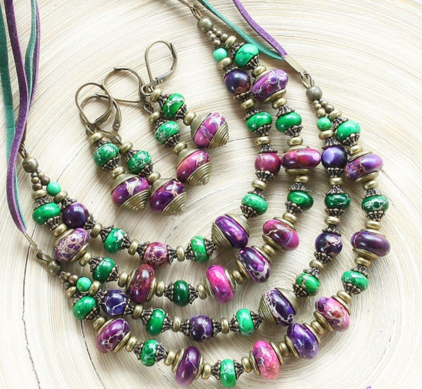 Пестрые бусы из природных самоцветов: мастер-класс