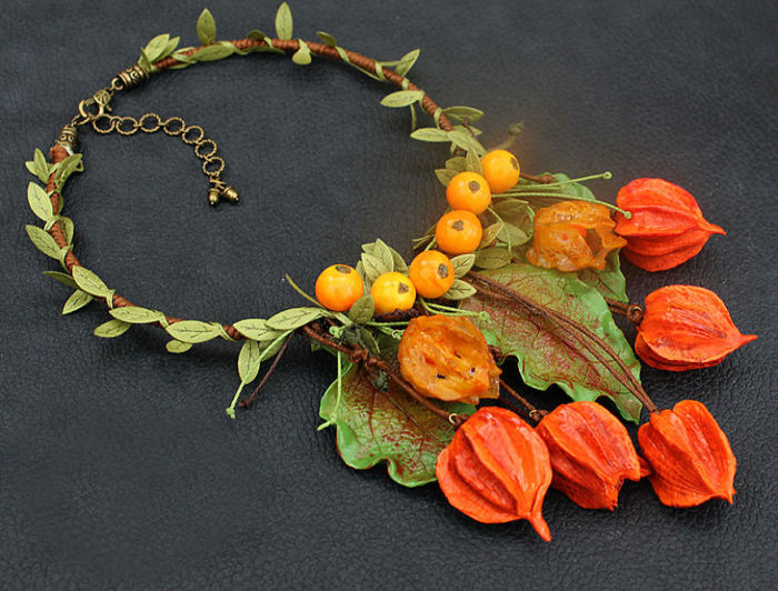 Украшения из полимерной глины получаются очень натуралистичными, материал позволяет большую вариативность и имеет большой потенциал по воплощению очень разнообразных идей. Поэтому творчество с помощью пластики приобрело широкую популярность в разных областях декоративно-прикладного искусства. Так, ее применяют для изготовления: