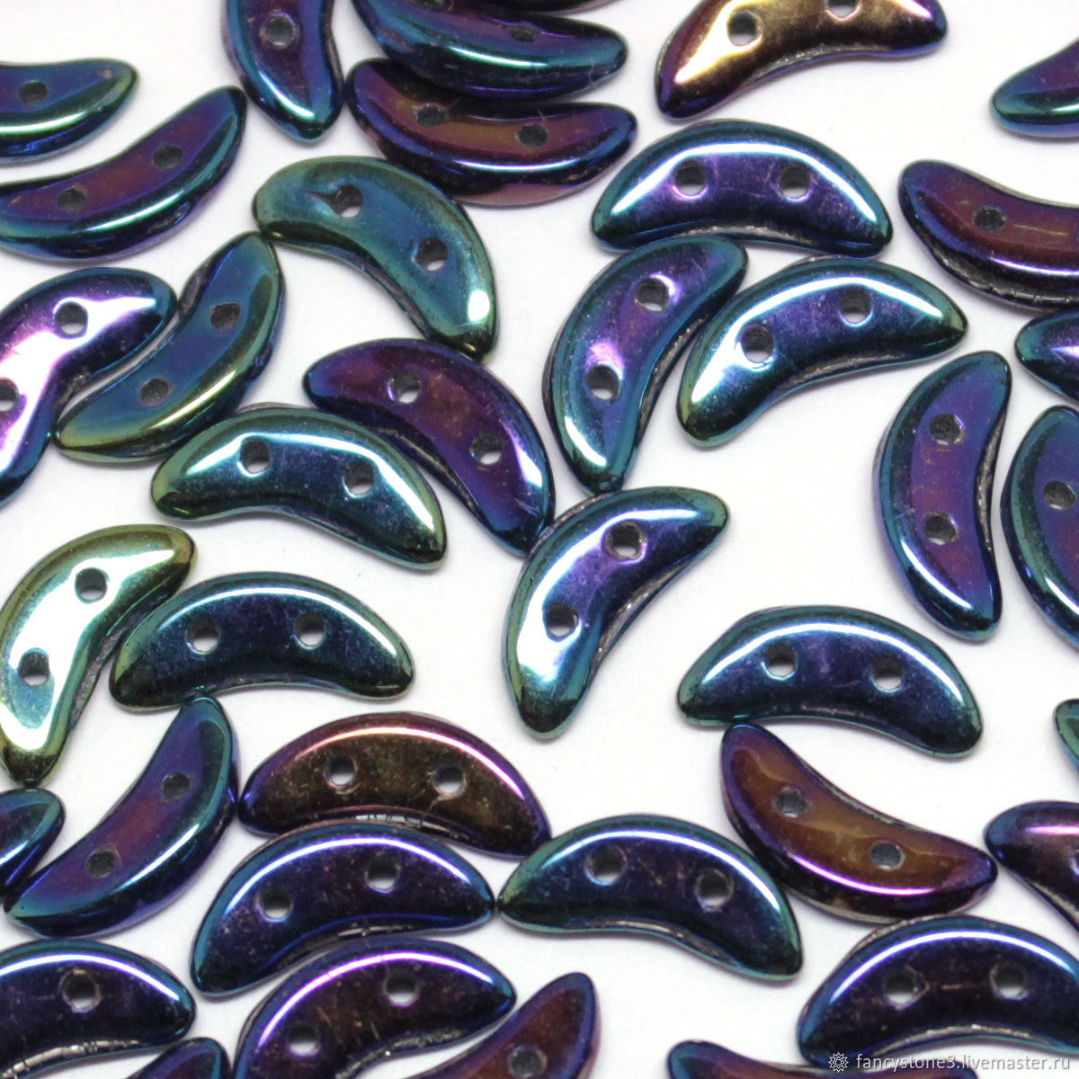 Похожи на чили и так же имеют 2 отверстия бусинки с названием Crescent (полумесяц), связанным, разумеется, с их формой. Поскольку они достаточно тонкие, их используют для плетения более сложных декоративных элементов.
