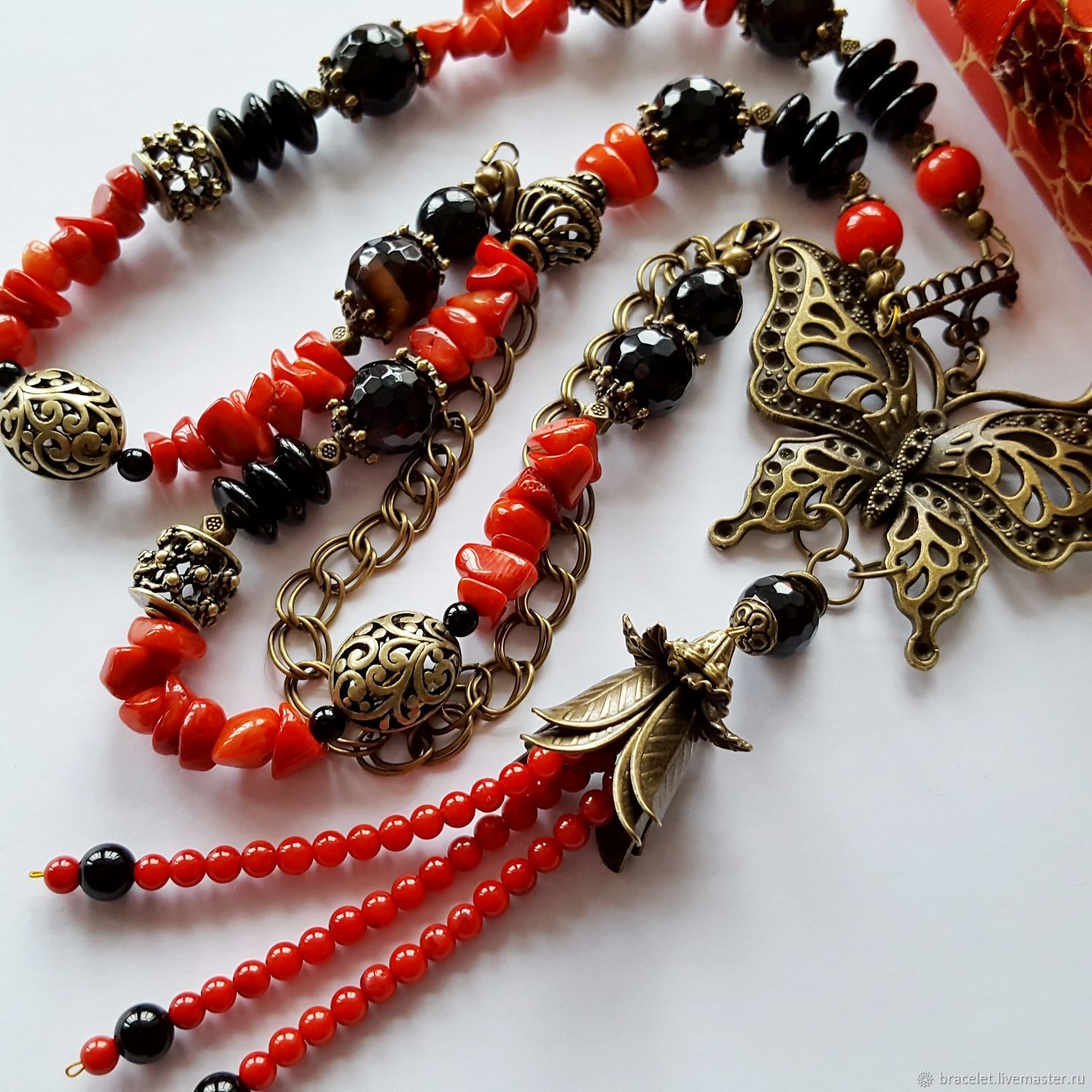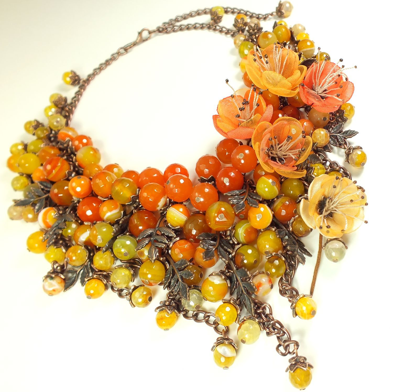 Фигурные бусины, имеющие форму флористических элементов (листки, цветки). Их изготавливают из разнообразных материалов в широкой цветовой гамме и большом разнообразии размеров. Такие бусины выглядят очень ярко, привлекательно и красиво.