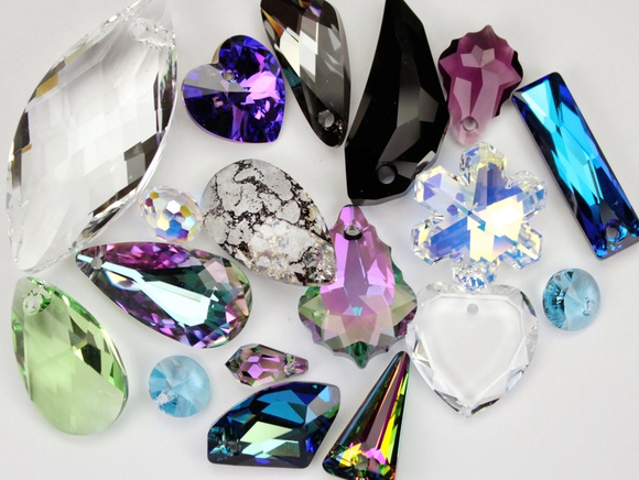 Бриолеты производства Сваровски характеризуются большим количеством граней, большей выпуклостью снизу и заостренностью вверху – по сравнению с чешскими бусинами. Груша же у этого бренда отличается большей плоскостью и шириной.
