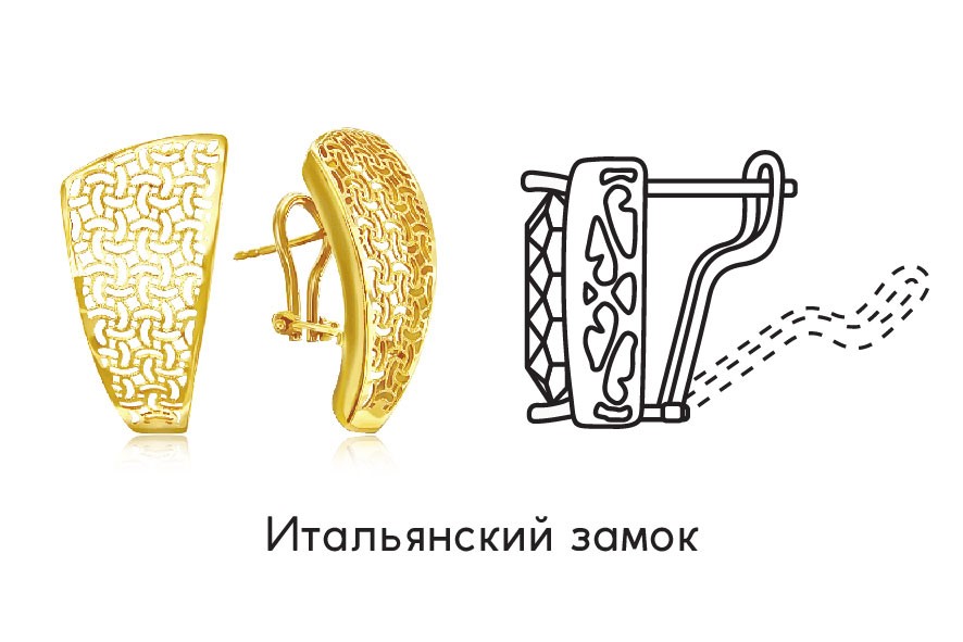 Внешне он похож на клипсу (иногда этот тип замков так и называют), но в нем есть дополнительный штифт, фиксирующий серьгу.