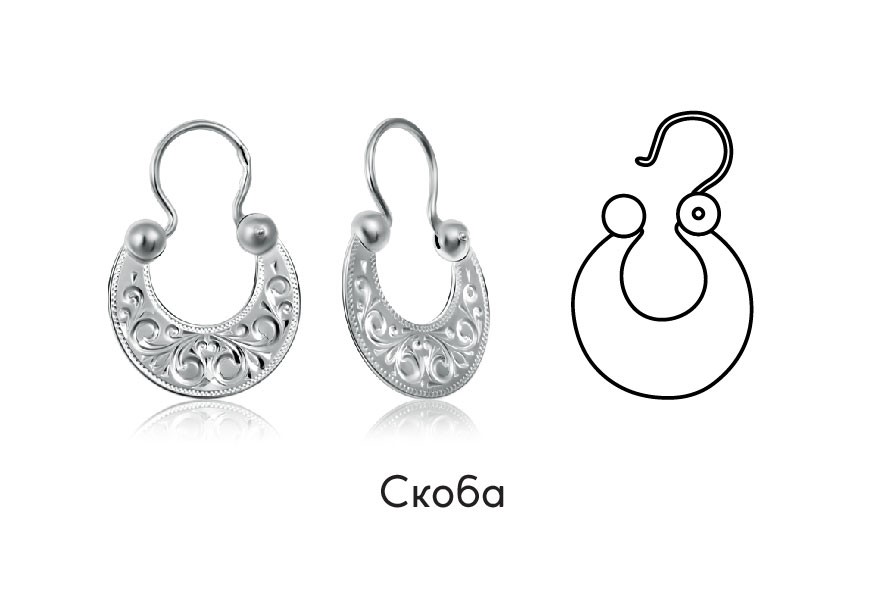 Этот вид застежек считают одним из наиболее старинных застегивающихся механизмов. Часто его ассоциируют с «цыганскими» украшениями. Замок состоит из подвижной дужки, держащейся на шарнире с одной стороны, а с другой стороны, скоба фиксируется миниатюрным крючком. Такие застежки идеально подходят для сережек округлой формы.