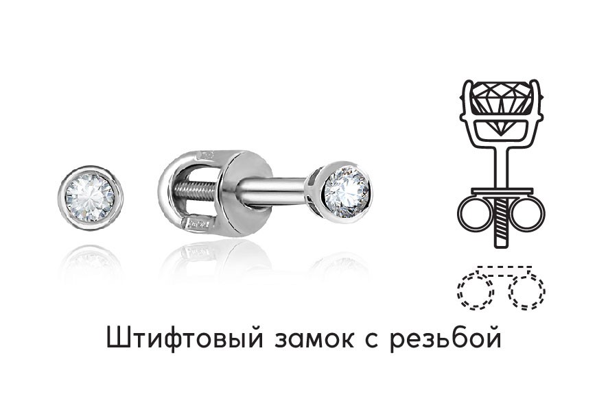 Другие названия этой разновидности застежки - пуссеты и штифтовые замки. Это простое устройство из штифта, продеваемого в мочку и заглушки, надеваемой на него. Оно позволяет менять степень зажима, чем обеспечивают надежное закрепление, а также комфорт во время носки. Штифт на дорогих серьгах часто имеет резьбу для закручивания зажима.