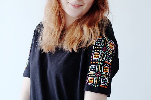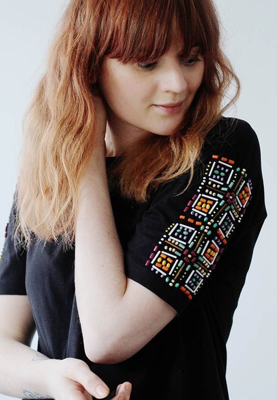 Простая футболка, украшенная бисерными узорами, смотрится оригинально!