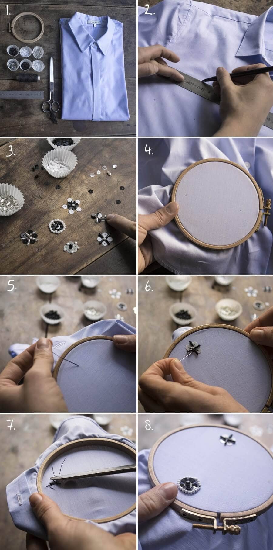 Вышивка с жемчужинками, стеклярусом и стразами превращают строгую и сдержанную офисную рубашку в шикарный эксклюзивный наряд.