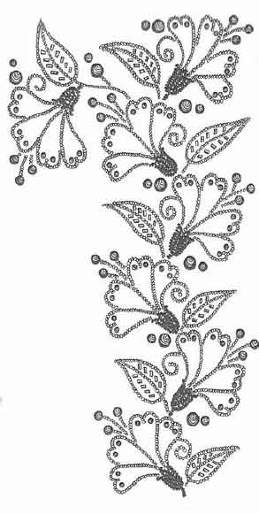 Данный узор состоит из повторяющихся фрагментов. Поэтому его можно увеличить в каждую из сторон, дополнительно повторяя элементы. Им обшивают края шалей, юбок, платья и любых других полотен, к примеру, штор или скатертей. При работе лучше использовать швы «вприкреп», «за иголку» или «арочный».