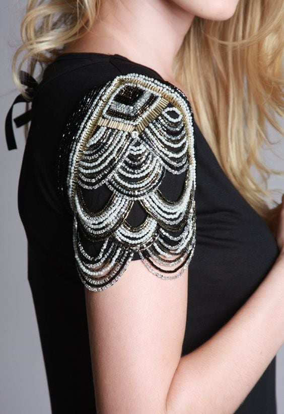 Особенно эффектно смотрится бисер, пришитый к черной ткани. Черная одежда, декорированная бисерными узорами, выглядит торжественно и нарядно.