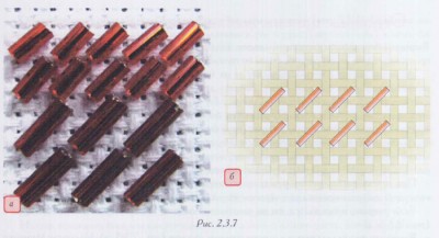 По этой методике каждый ряд стеклянных трубочек пришивается с противоположным предыдущему ряду наклоном.