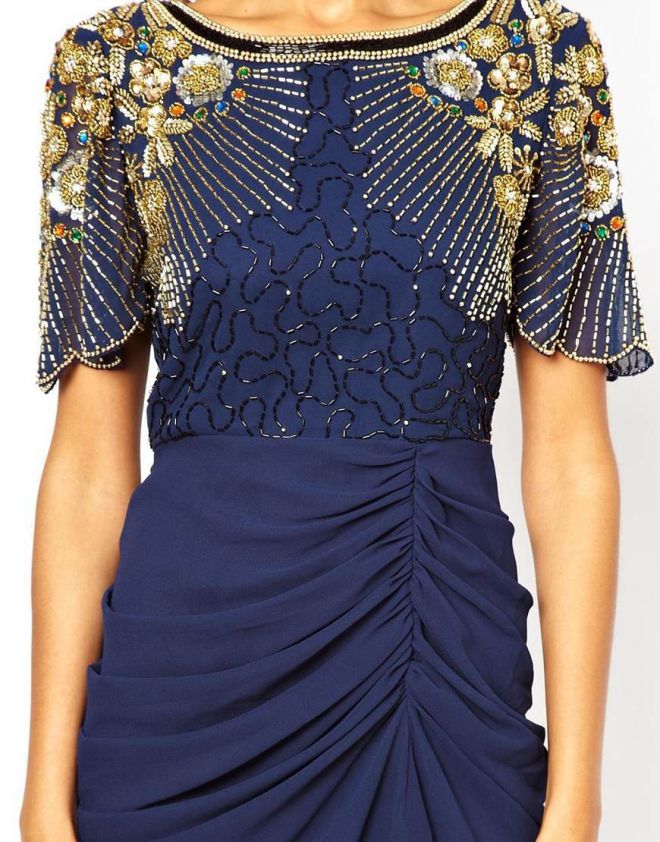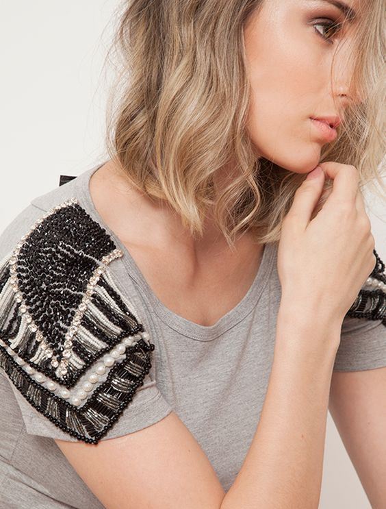 Описанные техники хорошо использовать для вышивки платьев, блузок, кардиганов и даже футболок. Вам стоит лишь отыскать подходящую к вашей задумке схему и следовать ей при вышивке узора. Стеклярус будет еще эффектнее смотреться в композициях с круглым бисером, блестками, стразами, пайетками, жемчужинами, камнями и бусинами.