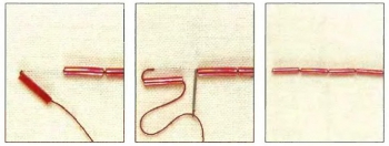 8. После нанизывания последнего цилиндрика, игла выводится на изнанку работы между последним и предшествующим ему цилиндриками.