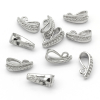 Наша коллекция включает бейлы с различным способом крепления, к примеру, штифтовые (когда подвеска навинчивается на штифт и закрепляется клеем), изделия для каменных кулонов с сеттингом для кабошона либо с шапочкой для бусинок с несквозным отверстием. Кроме того, мы предлагаем большой выбор обычных скоб и зажимных держателей (когда подвеска фиксируется посредством зажатия между специальными «лапками»).